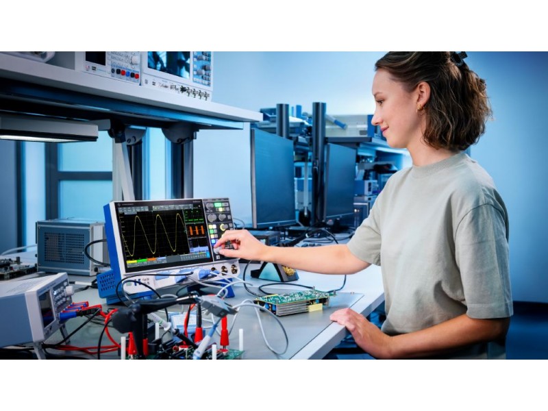 O R&S MXO 3 é um osciloscópio de nova geração que combina velocidade, precisão e um design compacto ideal para laboratórios de teste, produção ou pesquisa. Com taxas de aquisição de até 4,5 milhões de formas de onda por segundo e captura em tempo real de até 99%, ele entrega uma visibilidade incomparável de eventos raros e sinais transitórios. Sua arquitetura avançada baseia-se em conversão A/D de 12 bits com modo HD de 18 bits para máxima resolução vertical, aliado a memória padrão de 125 Mpts por canal.